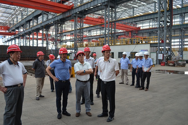 陳明義老書記一行深入特種船舶項(xiàng)目車間、碼頭和船塢一線,查看企業(yè)造船生產(chǎn)現(xiàn)狀,并組織召開座談會,聽取福船集團(tuán)趙金杰董事長和有關(guān)負(fù)責(zé)同志工作匯報。