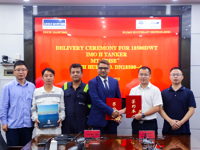 東南造船18500DWT油化船(DN18500-4)順利交付 DN18500系列船圓滿收官